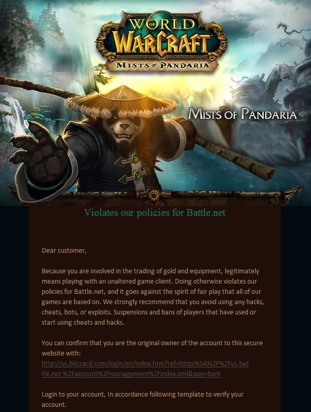 Inscrit(e) le: 11 janvier 2013, 17:48 Messages: 206 | Personnellement je me méfie toujours des mails soit disant de Blizzard qui arrivent dans ma boîte de réception et qui sont écris en anglais, normalement ils sont écris dans la langue du joueurs. En tout cas, merci du petit rappel Mocabes | ||